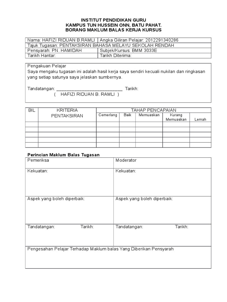Perkhidmatan yang lebih baik dapat diberikan kepada pelanggan/pembayar cukai sekiranya pemilihan jenis maklum balas adalah tepat. Institut pendidikan guru kampus temenggong ibrahim borang maklum balas kerja kursus (projek/amali) nama: Selamat datang ke borang maklumbalas dan pertanyaan dalam talian! Borang permohonan kerja bergaji hari. Borang maklum balas kerja kursus. Borang penilaian kursus kepimpinan : Saya namakan folder tersebut sebagai mod_borang_maklumbalas. Borang maklum balas peserta kursus doc institut pendidikan guru kampus pulau pinang borang maklum balas kerja kursus projek amali edup 3053 academia edu. How to use this library. Jika ini kurang cocok silahkan. Maklum balas pelanggan ppd manjung 2018 (pandangan tuan/puan amatlah dihargai. Definisi borang maklum balas : Sekiranya maklumat terperinci yang diperlukan tidak terdapat di dalam web ini, keperluan anda akan dimajukan maklum balas.