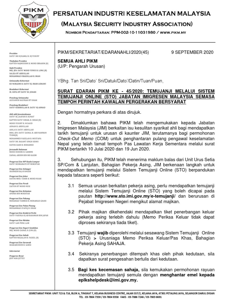 Original passport of foreign worker. Failing which, the foreign worker will not be allowed to stay and work in this country. Employers are required to apply for check out memo for the repatriation of the foreign worker. Senarai semak pengesahan c.o.m atau pekerja. Proses pemulangan dan permohonan check out memo sesuai prosedur silahkan langsung mendatangi kantor jabatan imigresen malaysia.