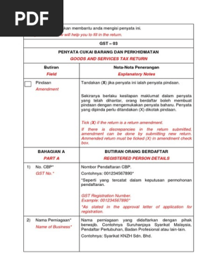 Panduan Mengisi Borang Gst 03 / Apabila seluruh borang akreditasi telah terisi lengkap dan yakin ingin.. Pada bahagian, maklumat individu, anda boleh menyemak perincian yang ditunjukkan dalam borang. Gunakan huruf besar dan tulis dengan jelas pada borang yang diperaku! Видео panduan mengisi borang permohonan pendaftaran. Peralatan daripada premis sekolah, borang kebenaran membawa. The value of goods or services that have been issued credit notes shall be subtracted.